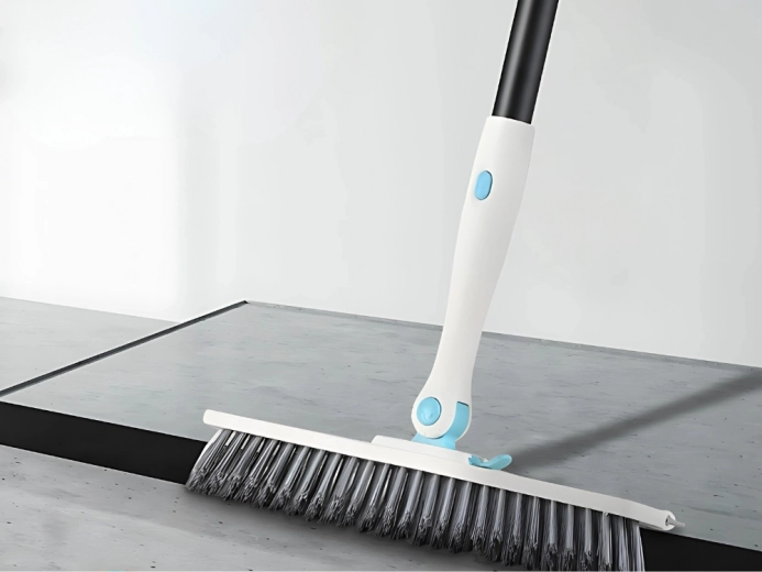 Universele 2-in-1 vloerborstel voor binnen en buiten combineert harde borstels voor schrobben en een geïntegreerde trekker voor snel streeploos water verwijderen. Dankzij de lange, verstelbare steel en de draaibare kop bereik je eenvoudig hoeken, langs muren en randen. Ideaal voor badkamers, terrassen, balkons, garages en keukens.
