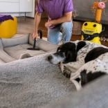 Speciale constructie met textielstroken voor het effectief opvangen van dierenharen op gestoffeerde oppervlakken.