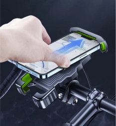 De houder is uitgerust met 360°-rotatie en anti-tril pads die schokken minimaliseren, zodat het scherm van je telefoon altijd helder en stabiel blijft, zelfs op kinderkopjes of in bergachtig terrein.