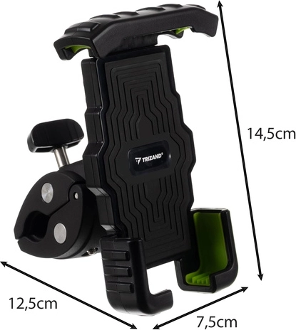 De Trizand frame-telefoonhouder is een universele en stevige accessoire voor alle liefhebbers van fietsen en motorrijden. Hij is ontworpen voor smartphones van 4,7" tot 7", met of zonder hoesje. Deze houder beschikt over een drievoudig beveiligingssysteem: een mechanisch slot, siliconen pads en een hoekvergrendeling die een veilige bevestiging van de telefoon garanderen, zelfs op hobbelige wegen.