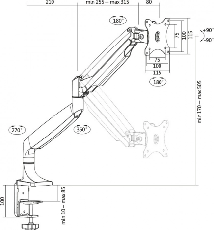Ideaal voor monitoren van 13 tot 27 inch met een maximaal gewicht tot 9 kg. Deze beugel combineert een stevige constructie met een modern design, waardoor stabiliteit en stijl op elke werkplek gewaarborgd zijn.