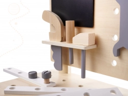 Een geweldige houten speelgoed gereedschapsset voor kleine kinderen die volwassenen willen imiteren en de wereld om hen heen willen ontdekken. Dankzij de uitgebreide uitrusting kunnen kinderen zich als echte vakmensen voelen.