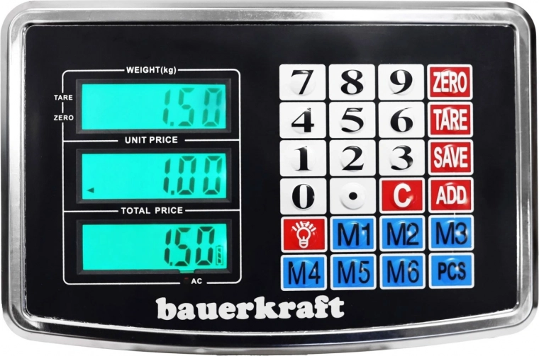 Praktische functies zoals TARE (tarra), ZERO (nulstelling) en stuks tellen verhogen de efficiëntie van het dagelijks werk. De ingebouwde batterij maakt gebruik zonder permanente voeding mogelijk en de inklapbare constructie bespaart ruimte bij opslag en transport. Schroefbare stelvoeten maken preciese nivellering op oneffen oppervlakken mogelijk.