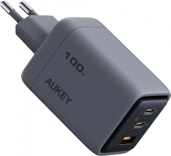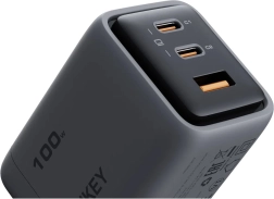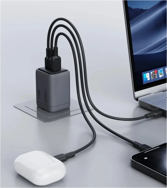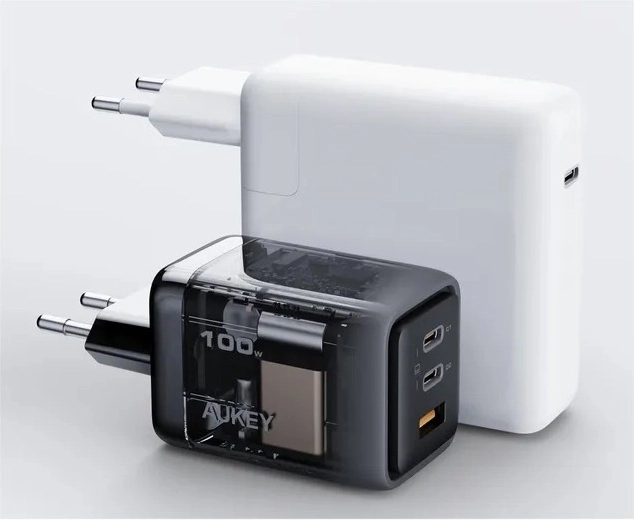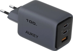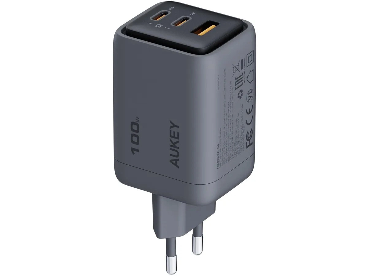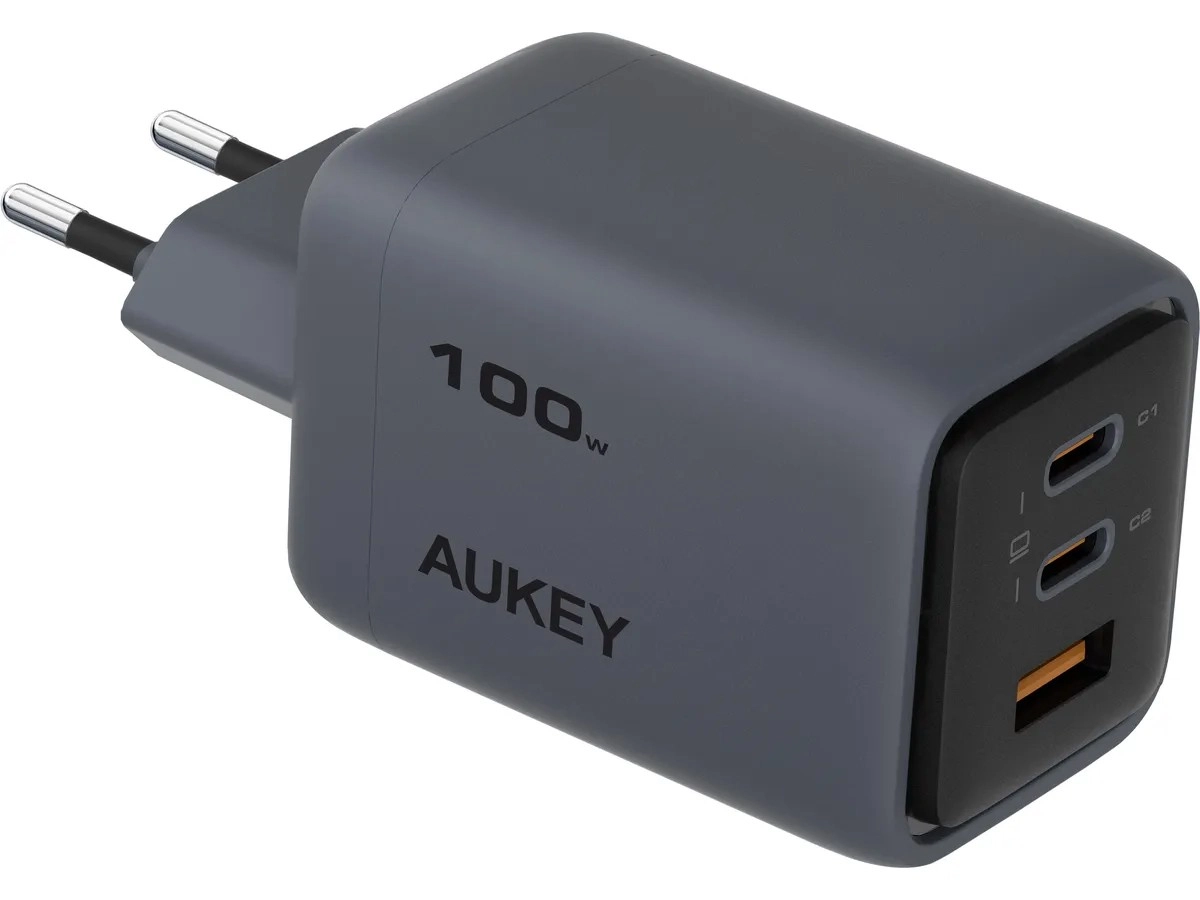 De elegante en minimalistische driepoorts lader Aukey Comet Mix 3 is dankzij zijn afmetingen van slechts 39.0 x 45.3 x 62.1 mm en een gewicht van 166 gram de ideale reisgenoot. Hij beschikt over twee USB-C-poorten en één USB-A-poort en ondersteunt Quick Charge 5.0 en Dynamic Detect voor optimale vermogensverdeling.