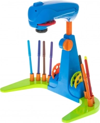 Het gebruik is eenvoudig: plaats 3 AA-batterijen, kies een schijf, plaats deze in de projector, stel de hoogte in en begin! De set bevat ook 12 kleurrijke stiften voor het eenvoudig inkleuren van overgetrokken afbeeldingen.