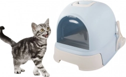 Gladde binnenoppervlakken en een uittrekbaar ondergedeelte maken snel leeggooien en afspoelen mogelijk. Het te openen bovendeel versnelt de vervanging van het kattengrit.