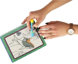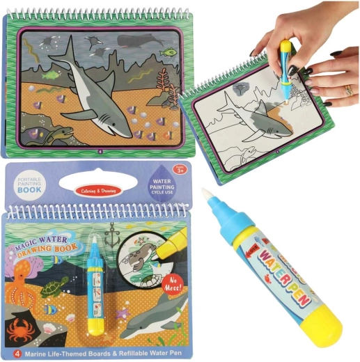 Dit herbruikbare waterkleurboek biedt kinderen uren speelplezier. Dankzij de magische waterpen verschijnen levendige kleuren en verborgen details van de onderwaterwereld zodra de pagina’s met water in aanraking komen. Na het drogen vervaagt het beeld en kan het kind keer op keer opnieuw schilderen.