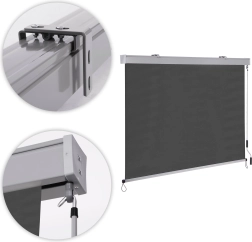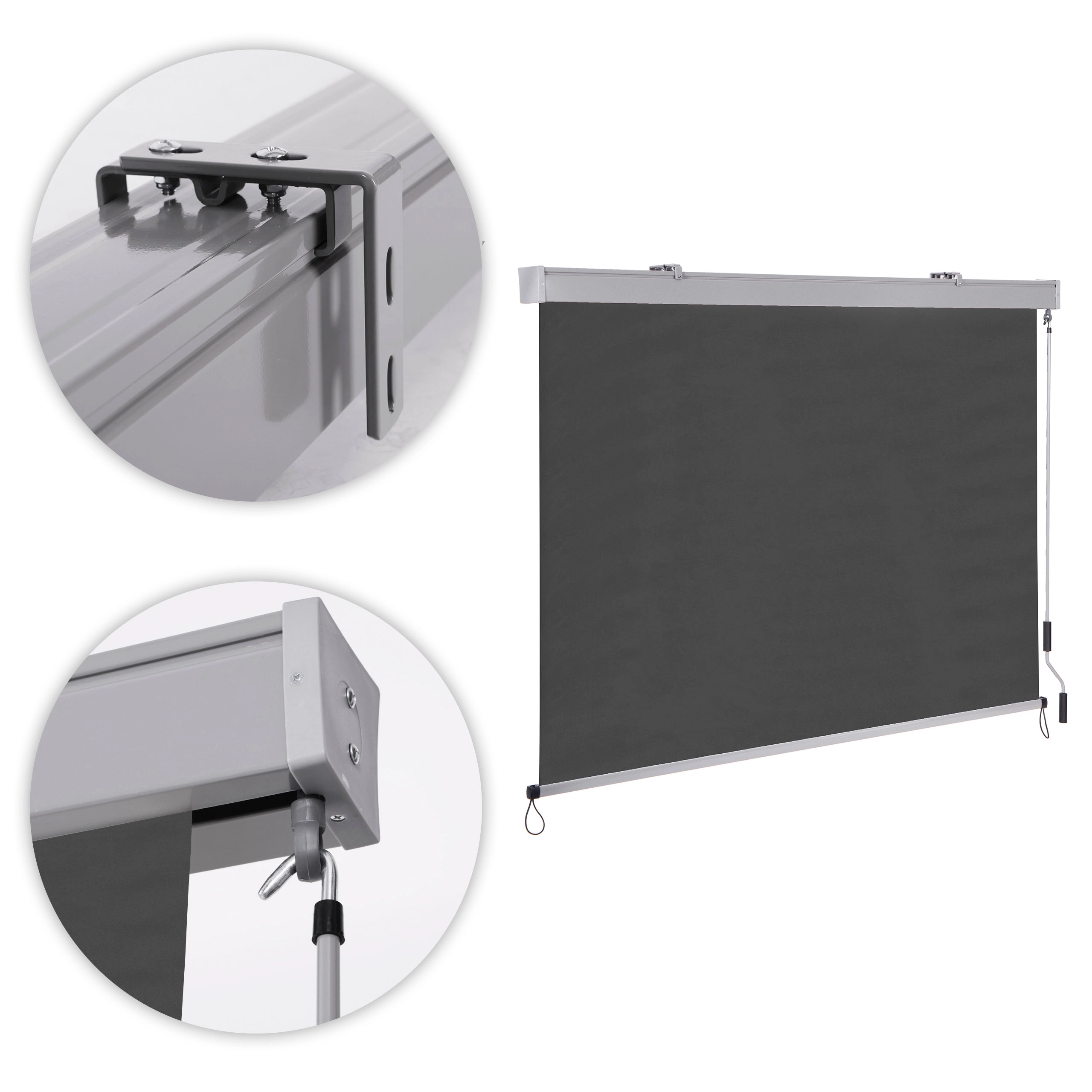 eenvoudige en snelle installatie mogelijk. Alle benodigde componenten zijn inbegrepen. De zonwering wordt gemonteerd op twee metalen beugels die met pluggen aan de muur worden geschroefd.