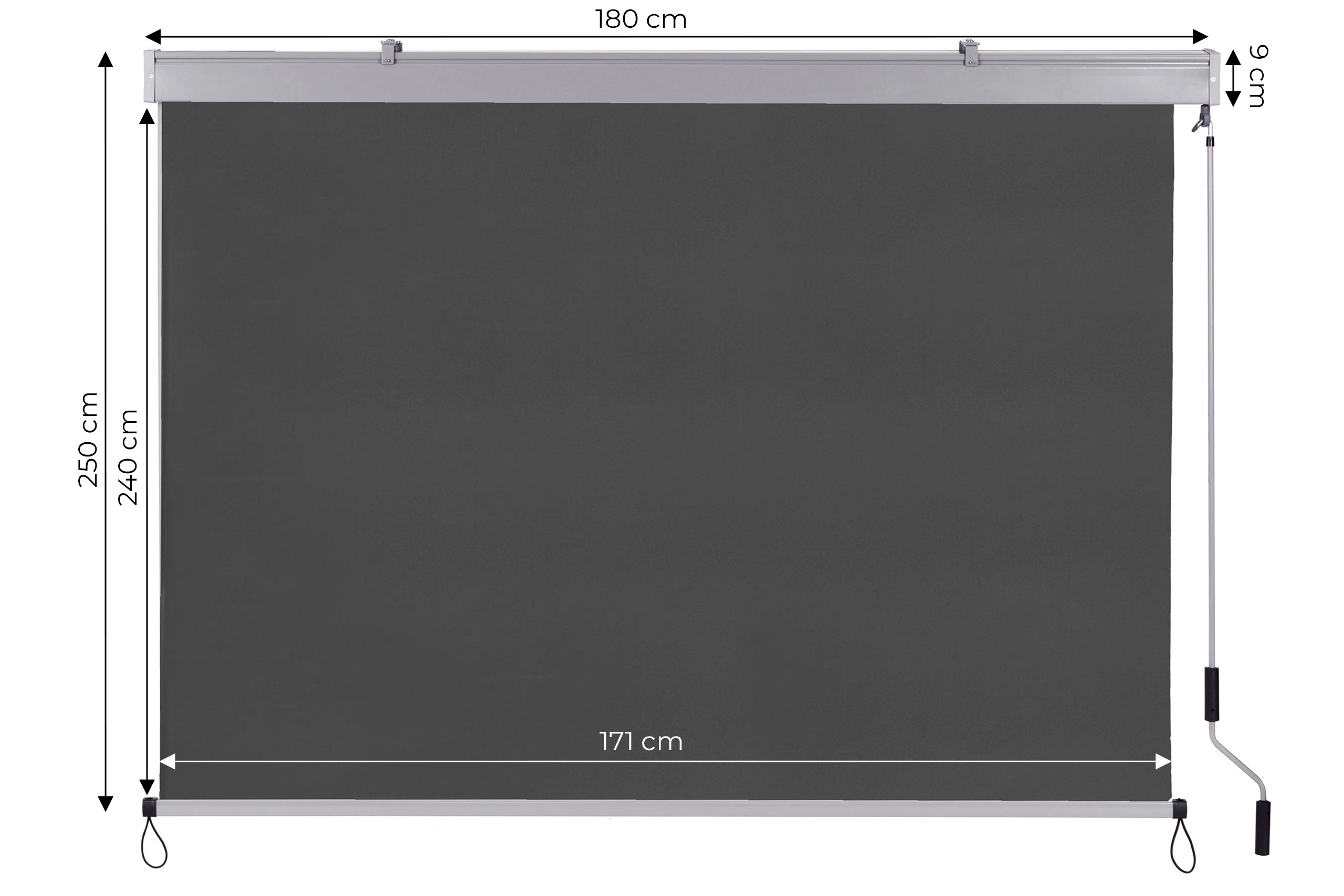 - Totale lengte (met cassette): 250 cm
