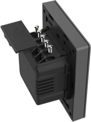 CE-certificering, onbrandbaar PC V0-materiaal en slim doordachte installatie. De grafietkleur past bij moderne interieurs en de NSPanel.