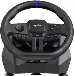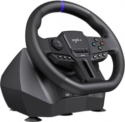 Het PXN V900 gaming stuurwiel is ontworpen voor race simulatiegames en biedt maximale realisme dankzij een draaibereik van 9006 tot 2706. De getextureerde handgrepen en robuuste basis zorgen voor stevige controle tijdens spannende races. Het stuurwiel is compatibel met meerdere platforms, waaronder PC, Xbox, PlayStation en Nintendo Switch.