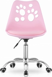 Ontdek de combinatie van elegantie en functionaliteit met deze roze bureaustoel, ideaal voor kantoor, woonkamer of eetkamer. Het is uitgerust met een verstelbare hoogte dankzij de pneumatische lift en een comfortabele hoge rugleuning, die de hele dag comfort garandeert.