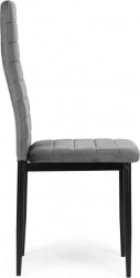 De set van vier gestoffeerde stoelen vormt een elegant en modern element in ieder interieur. Deze stoelen bieden uitstekend zitcomfort dankzij de gevormde rugleuning en de hoogwaardige schuimvulling. Ze zijn uitgerust met rechte, zwarte metalen poten voor perfecte stabiliteit en een moderne look.