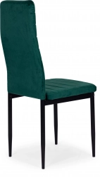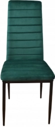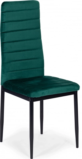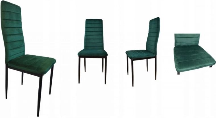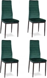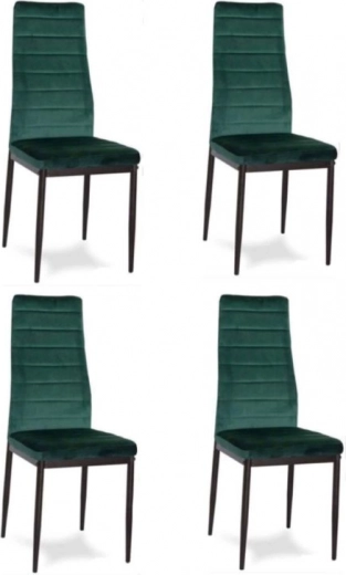 Deze set van vier eetkamerstoelen is een ideale keuze voor je eetkamer of woonkamer. Ze vallen op door hun moderne design en aangenaam aanvoelende groene fluwelen bekleding. Dankzij de hoge, gevormde rugleuning en schuimvulling van hoge kwaliteit bieden de stoelen maximaal comfort. De zwarte metalen poten geven de stoelen een elegante uitstraling en garanderen tegelijkertijd stabiliteit.