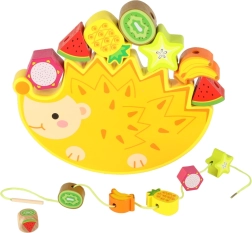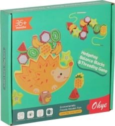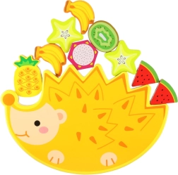 Dit Montessori-balansspel vermaakt kinderen urenlang en leert hen tegelijkertijd. Kinderen kunnen het fruit aan het koord rijgen, of het op de egel balanceren zodat de fruittoren niet omvalt. De dobbelsteen met kleuren/afbeeldingen voegt een element van toeval en leuke uitdagingen toe.