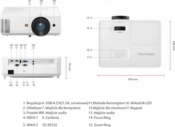- 2x HDMI 1.4, 1x VGA, 1x audio 3,5 mm jack