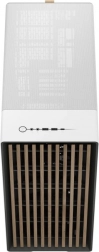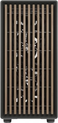 Dit ontwerp integreert de PC-behuizing moeiteloos in je interieur met een elegante voorzijde van eiken- of notenhout.