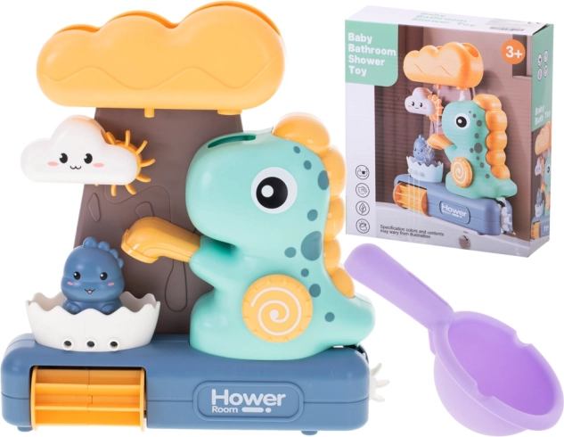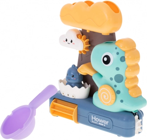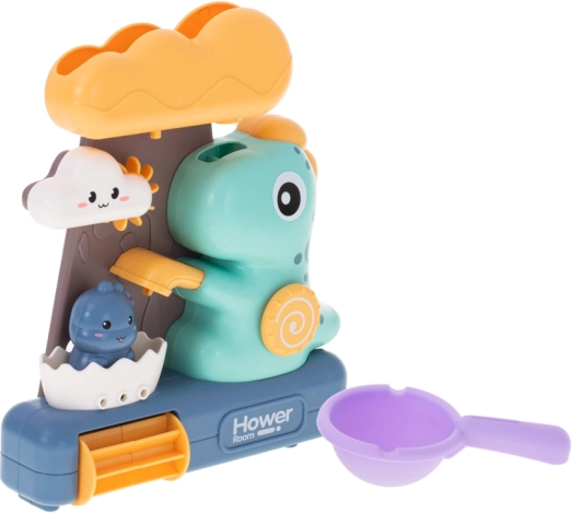 De hoofdrolspelers van het speeltje zijn kleurrijke dinosaurussen en een glimlachend wolkje die elk bad in pure vreugde veranderen. Het speeltje stimuleert de creativiteit en verbeeldingskracht van kinderen en ontwikkelt logisch denken. Het kind kan observeren hoe water dat op één plek wordt gegoten, door een andere opening stroomt en zo alle onderdelen van het speeltje in beweging brengt.
