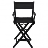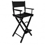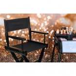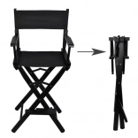 Opvouwbare cosmetische stoel in zwart design is een professionele houten stoel bedoeld voor visagie, make-up en styling, ideaal voor salons en mobiele visagisten.