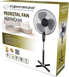 Geniet van een frisse bries met de ESPERANZA HURRICANE, die dankzij het moderne design in elk interieur past. Veiligheid wordt gewaarborgd door het dichte voor- en achterrooster, dat de “kindervinger-test” heeft doorstaan. De stabiele kruisvoet met antislip doppen houdt de ventilator stevig op zijn plaats, ook bij langdurig gebruik.
