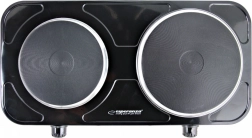 De elektrische kookplaat heeft twee platen met traploze vermogensregeling. Dankzij de compacte afmetingen en de mogelijkheid om ze in verschillende omgevingen te gebruiken, wordt het een onmisbare hulp. Veilig gebruik wordt gewaarborgd door oververhittingsbeveiliging en een aan/uit-lampje.