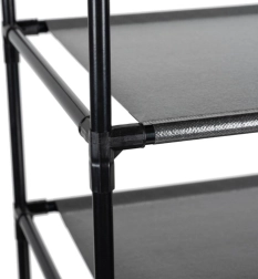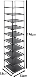 Eenvoudige montage zonder gereedschap kost slechts vijf minuten, zelfs voor onervaren gebruikers. Het rek met tien planken biedt veel opslagruimte voor tot tien paar schoenen.