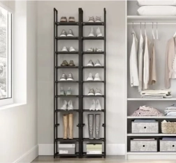 Met dit modulaire schoenenrek kun je jouw schoenen overzichtelijk en efficiënt organiseren. Lichte en stabiele constructie zorgt voor veilige opslag tot 5 kg per plank. Dankzij het modulaire ontwerp kun je de configuratie aanpassen aan de beschikbare ruimte en hoeveelheid schoenen.