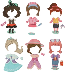 Een uitgebreide set magnetische kleding, kapsels en accessoires met voorbeeldkaarten biedt tientallen outfits en scènes. Ideaal om volgens een voorbeeld te werken of om vrij te creëren.