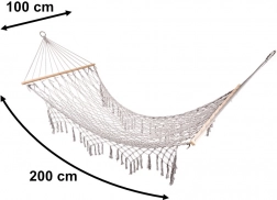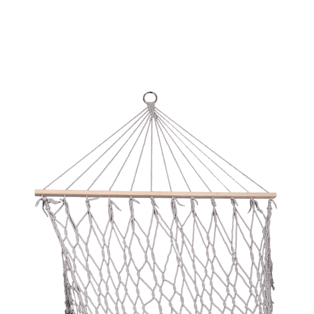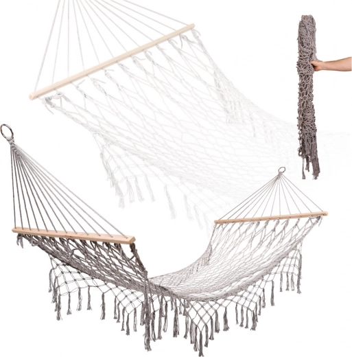 Gemaakt van hoogwaardige katoenen vezels (65%) die een hoge sterkte en een draagvermogen tot 250 kg garanderen. Dankzij de elegante franjes en grijze kleur past het perfect in elke tuinomgeving.