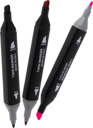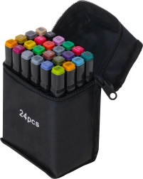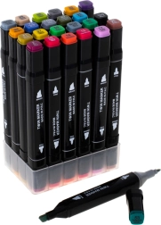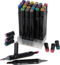 Tweekleurige alcoholmarkers in etui, 24 kleuren + standaard