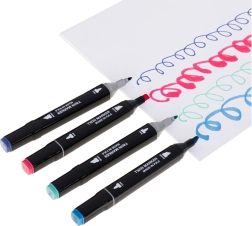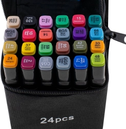 Ontdek de set van 24 dubbele alcoholmarkers in een praktisch etui met standaard – ideaal voor tekenen, schetsen, schrijven en design. Elke marker heeft een brede, schuine punt voor snel inkleuren en een fijne punt voor precieze details. Alcoholbasis-inkt biedt intense kleuren, gemakkelijk mengen en blenden en snel drogen zonder vlekken.