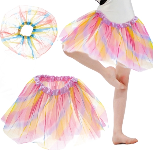 Deze kleurrijke tutu-rok is een geweldige aanvulling voor school- en kleuteroptredens, danslessen en verkleedfeestjes. Drie lagen stevigere, gerimpelde tule behouden een prachtige vorm en zorgen voor opvallend volume.