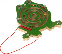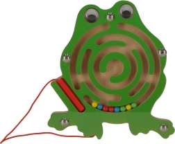 Dit houten magnetische doolhof in de vorm van een kikker houdt kinderen thuis en onderweg langdurig bezig. Met de meegeleverde magnetische pen aan een koordje leiden ze de gekleurde balletjes door de kronkelige banen naar de eindbestemming. De transparante afdekking zorgt ervoor dat de balletjes altijd binnen het speelgoed blijven.