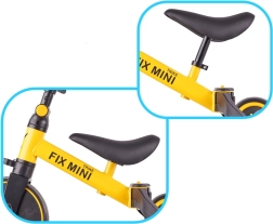 De Trike Fix Mini groeit met het kind mee: in een handomdraai bouw je hem om van een loopfiets met drie wielen naar een trapdriewieler en vervolgens naar een trainingsmodus met smallere achterwielbasis om het evenwicht te oefenen. Het verstelbare stuur (41–50 cm) en zadel (31–38 cm) zorgen voor een ergonomische afstelling voor jonge rijders van 18 maanden tot 4 jaar.