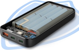 Ervaar de voordelen van onze powerbank met geavanceerde snellaadtechnologie Power Delivery en Qualcomm Quick Charge 3.0. Laad tot drie apparaten tegelijk op dankzij twee USB-C-poorten en één USB-A-poort.
