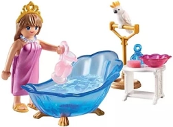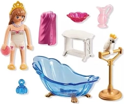 Ontdek de luxe van koninklijke ontspanning met de PLAYMOBIL Badkamer voor prinsessen. De badkamer kan met water worden gevuld, wat zorgt voor ultieme relaxmomenten. De prinses draagt een handdoek die gemakkelijk kan worden omgedaan of afgenomen, afhankelijk van de behoefte. De set bevat ook prachtige accessoires zoals een kroon, een ketting en meer, zodat je magische verhalen kunt creëren.