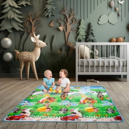 Deze opvouwbare mat van duurzaam EPE-schuim is ideaal als kleed voor de kinderkamer en speelhoek. Dankzij de dubbelzijdige print combineert hij plezier en leren – kinderen oefenen tijdens het spelen letters, cijfers en dieren.