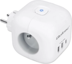 Minimalistisch en functioneel ontwerp met een verlichte schakelaar voor eenvoudige controle van de stroomstatus. De stijlvolle uitstraling en compacte vorm van de kubus bieden een nette oplossing voor kabel- en apparaatbeheer.