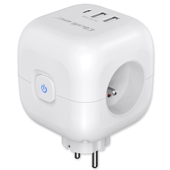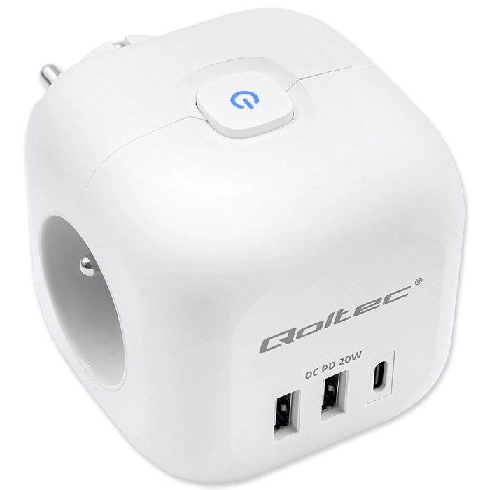 Het ruimtebesparende ontwerp van de voedingskubus maakt het eenvoudig om 3 AC-aansluitingen aan de zijkanten te rangschikken voor comfortabel aansluiten van grotere stekkers. Aan de voorkant bevinden zich 2 USB-A poorten en 1 USB-C PD 20W poort, zodat je gemakkelijk je telefoon, tablet of koptelefoon kunt opladen zonder extra opladers nodig te hebben.