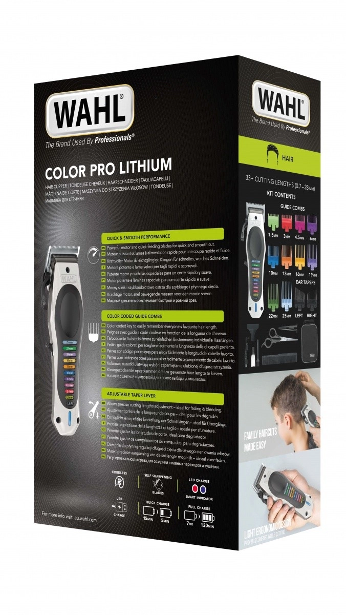 De Color Pro Lithium-tondeuse biedt een krachtige motor en hogesnelheidsmessen die zorgen voor snelle en soepele knipbeurten. Je hoeft geen tijd meer te verliezen aan het bijwerken van je haar.