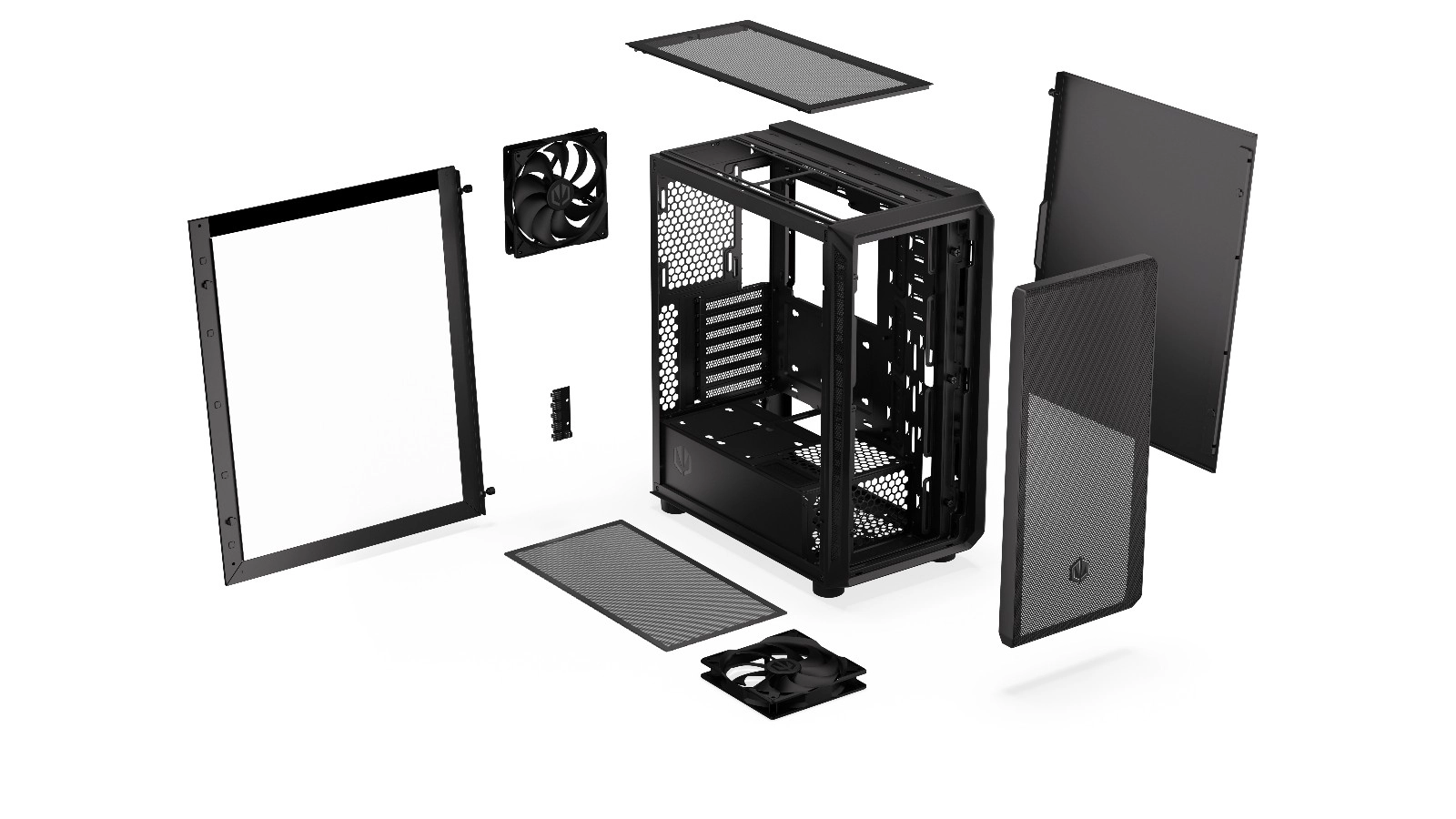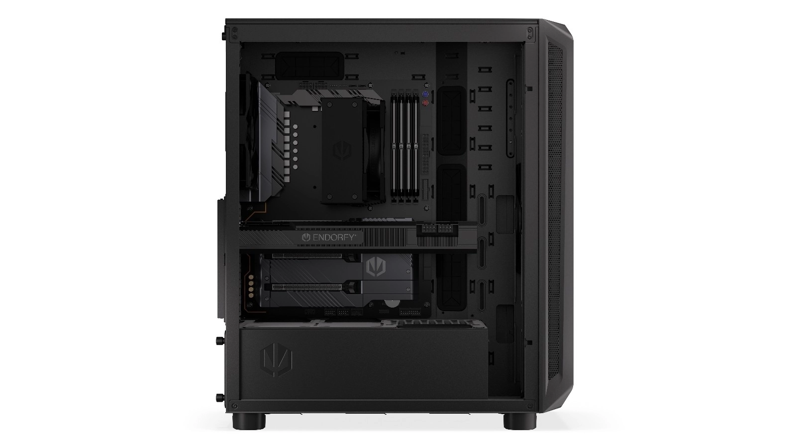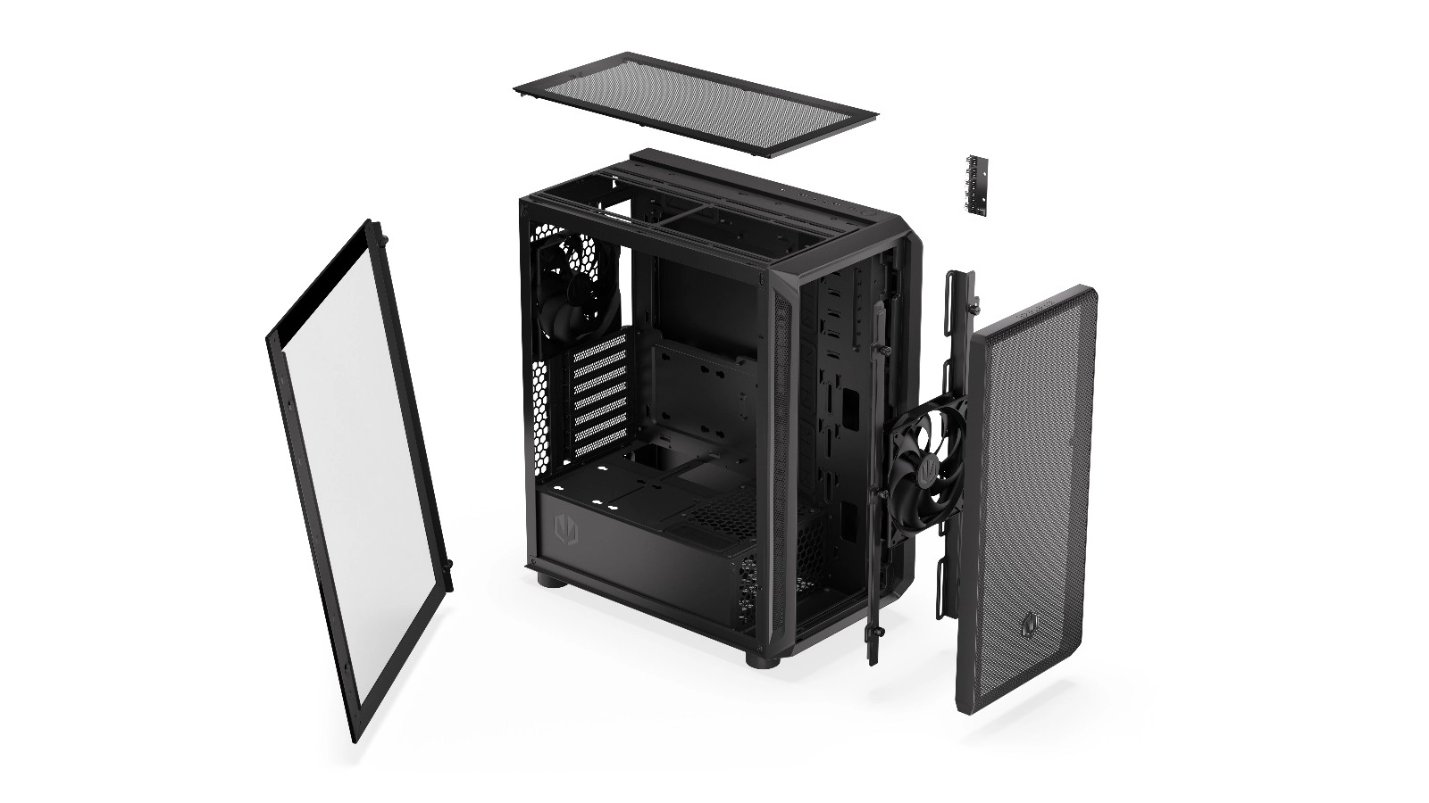 • Ruim interieur: Geschikt voor grafische kaarten tot 350 mm, voedingen tot 300 mm en ondersteunt koelers tot 360 mm.