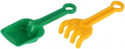 De schep en hark met afgeronde randen zijn afgestemd op kleine kinderhandjes. Geschikt vanaf 12 maanden en ideaal voor de eerste spelletjes in het zand.