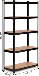 Het rek heeft 5 stevig geconstrueerde planken die je op elke gewenste hoogte kunt monteren. Elke plank heeft een extra centrale steun voor stabiliteit. De legplanken zijn gemaakt van duurzaam MDF, bestand tegen mechanische schade en druk, wat zorgt voor langdurig, probleemloos gebruik.