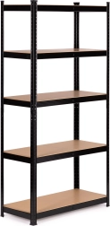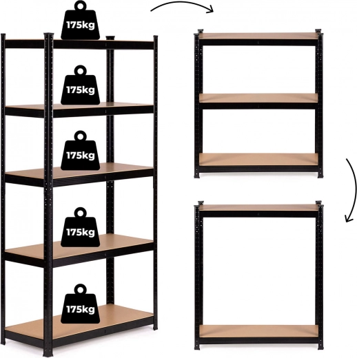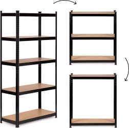 Het rek heeft 5 duurzame planken die op elke gewenste hoogte kunnen worden gemonteerd, zodat je de indeling naar wens kunt aanpassen. De constructie is versterkt met een extra middenligger onder elke plank voor extra stabiliteit.