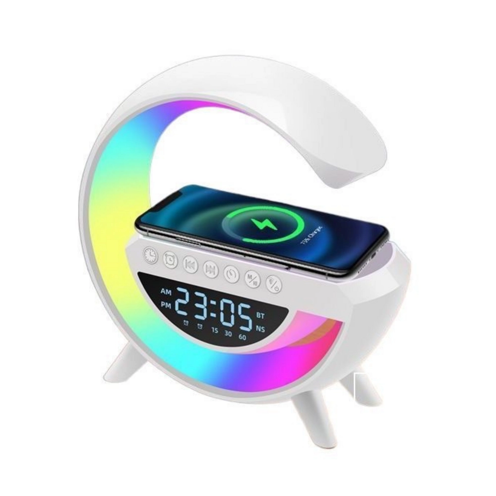 De moderne G63 nachtlamp is ideaal voor elke slaapkamer, kinderkamer of kantoor. Hij combineert functies van slimme verlichting, wekker, geluidsapparaat en inductielader, en biedt zo comfort en functionaliteit in één elegant apparaat. Dankzij de zonsopgangssimulatie is wakker worden natuurlijker en aangenamer, wat bijdraagt aan een beter welzijn vanaf de ochtend. Met traploze helderheidsregeling en een keuze uit verschillende kleurmodi kun je de sfeer aanpassen aan elke situatie - van ontspannen voor het slapen tot wakker worden in de ochtend.