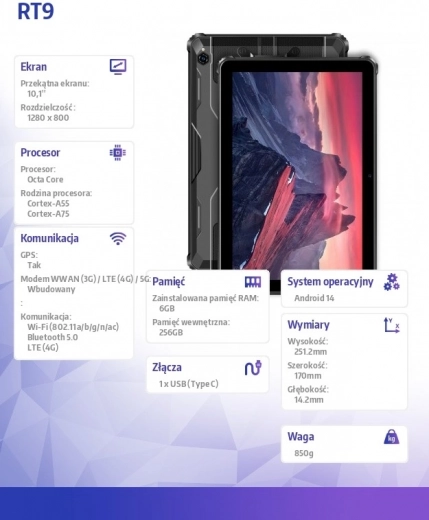 De Oukitel RT9-tablet is voorzien van de krachtige octa-core Unisoc Tiger T606-processor, die in combinatie met 6 GB RAM en 256 GB interne opslag zorgt voor een soepele werking van alle apps en voldoende ruimte voor data. Met de 11.000 mAh batterij biedt hij tot 48 uur bellen of 30 uur muziek, en dankzij snelladen met 18 W wordt de energie snel aangevuld. De tablet heeft een 16 MP camera aan de voor- en achterzijde, ideaal voor videogesprekken en foto’s. Met LTE, Wi‑Fi 5 en Bluetooth 5.0 ben je altijd verbonden en met de ingebouwde GPS vind je eenvoudig je weg.