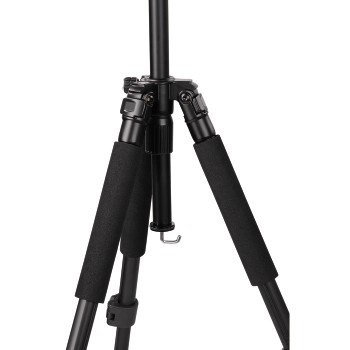 Het statief is uitgerust met een haak aan de onderzijde van de centrale kolom voor extra gewicht en stabilisatie. Rubberen voetjes zorgen voor een veilige en precieze plaatsing.