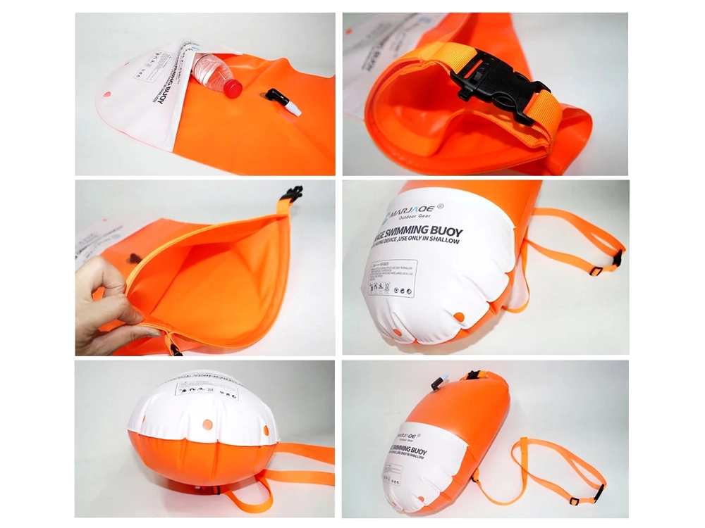 Dankzij de verstelbare riem klik je de boei comfortabel aan je middel, zonder hinder tijdens het zwemmen. Na het leeglaten vouw je hem eenvoudig op en gebruik je hem als lichte tas. Ideaal voor open water, triathlontraining, recreatief zwemmen en peddelsport.
