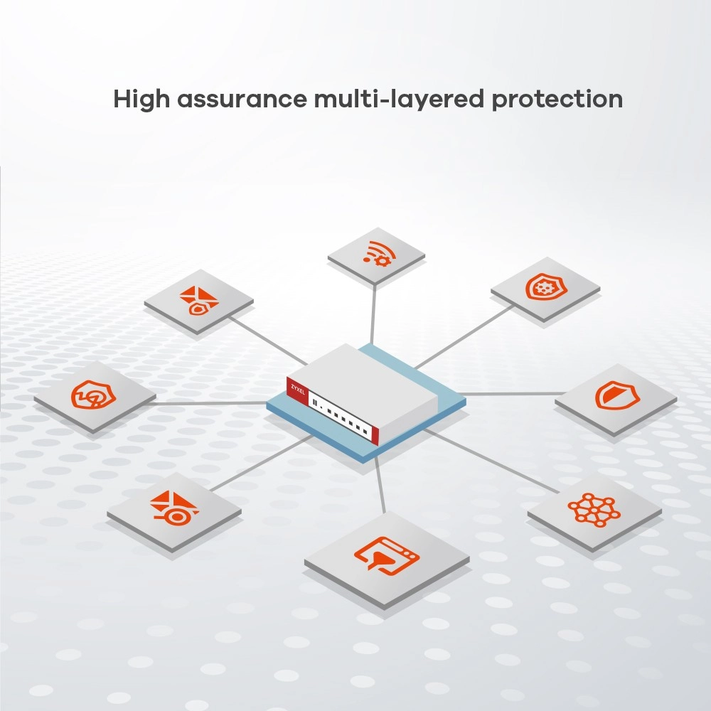 Integratie met Nebula Cloud Management maakt gedetailleerde Zero-Trust Network-beveiligingsbeleid mogelijk voor organisaties, met toegangsauthenticatie en beveiligde wifi. Geavanceerde dreigingsinformatie geïntegreerd met analyses van toonaangevende partijen verhoogt de detectienauwkeurigheid door een bredere dekking van de malware-database.