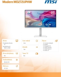 Moderne LED-monitor met een beeldschermdiagonaal van 27 inch en UHD-resolutie zorgt voor een scherp en helder beeld. Het elegante witte design is de ideale aanvulling op elke moderne werkplek.